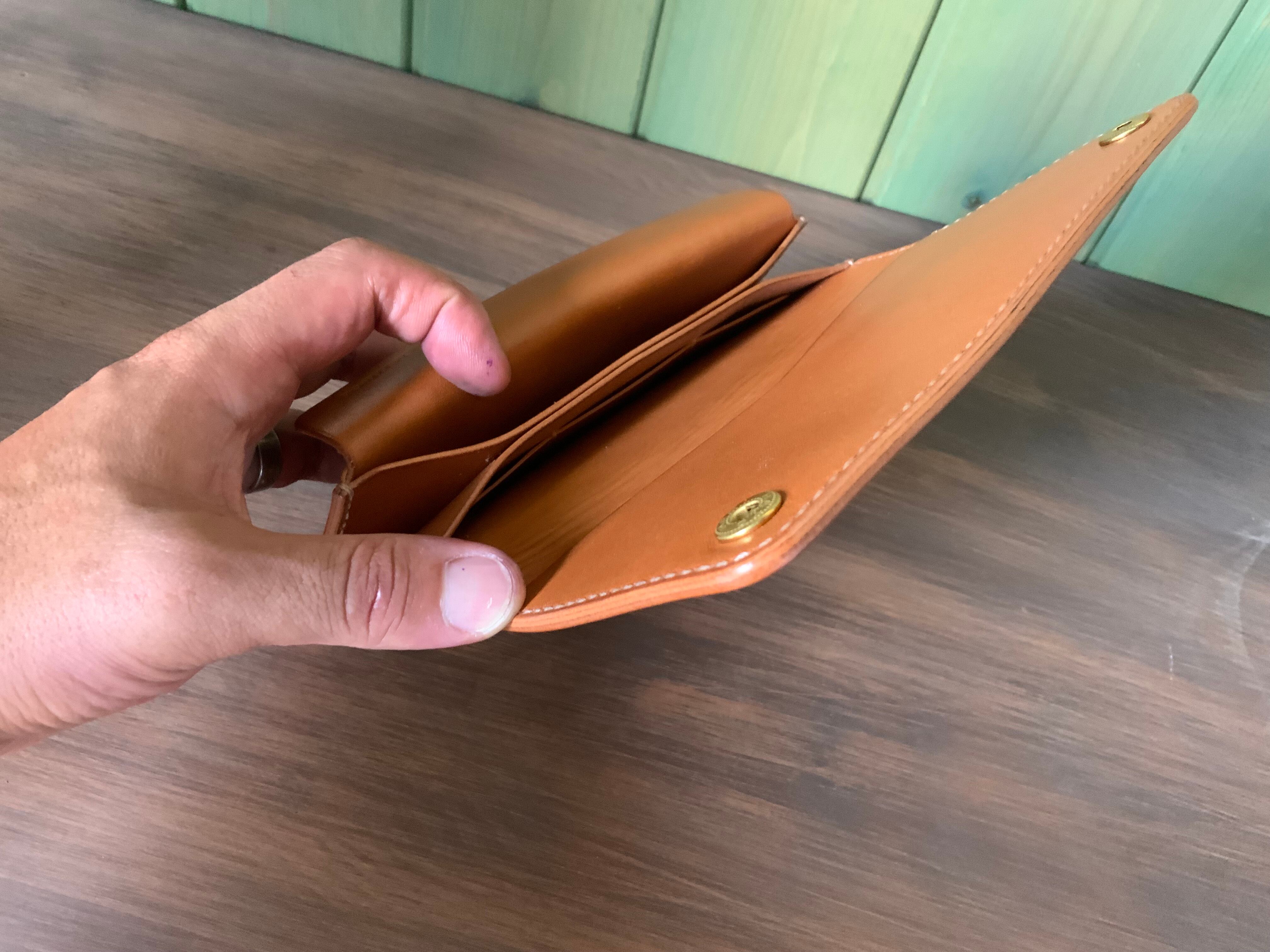 開いた時にお札、コイン、カードなどすべて片側に配置することでストレス無く出し入れできます。
