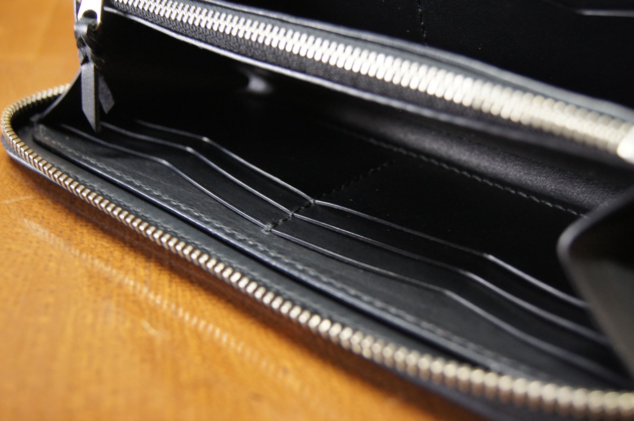 ファスナーを開くだけで中身が一目瞭然の長財布です。